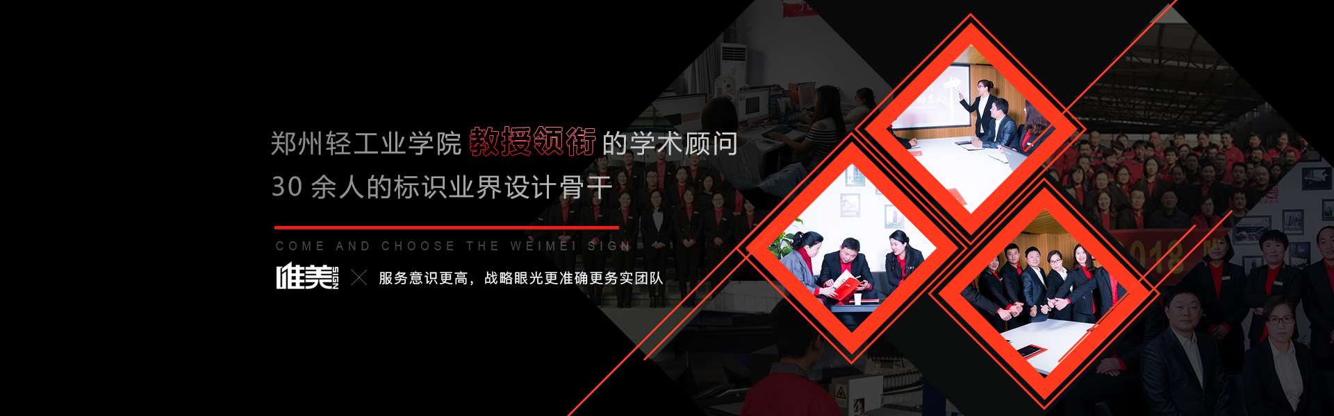 鄭州唯美標識設(shè)計制作公司擁有21000平方現(xiàn)代化生產(chǎn)車間、多臺先進設(shè)備、100多名技工團隊、12位資深設(shè)計師團隊,嚴遵19道制作工序和6S管理體系,成功服務2800多個標識項目,3...